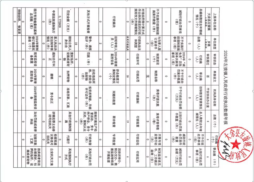 2024年左拔鎮人民政府行政執法數據年報
