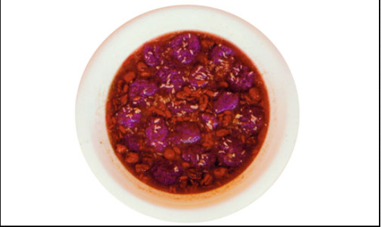 江西名小吃,屬于大余傳統的具有濃郁地方風味的待客佳肴。用毛薯(腳板薯)刮皮洗凈涮成漿,(1)在鍋上烙成餅,加上米酒、紅棗、枸杞、生姜、紅糖煮熟即成毛薯酒。此乃暖血補體之品,適合秋冬進補;(2)將毛薯漿用水湯勺直接刮入沸水中煮熟,配上水酒、紅糖、紅棗等料煮熟也成,此種適宜怕火氣的人食用。此酒香甜可口,活血補氣。