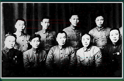 1938年2月,閩東紅軍游擊隊改編為新四軍第三支隊第六團,葉飛任團長。圖為葉飛(前排左二)與新四軍領(lǐng)導(dǎo)人陳毅(前排中)、項英(前排右二)等合影。
