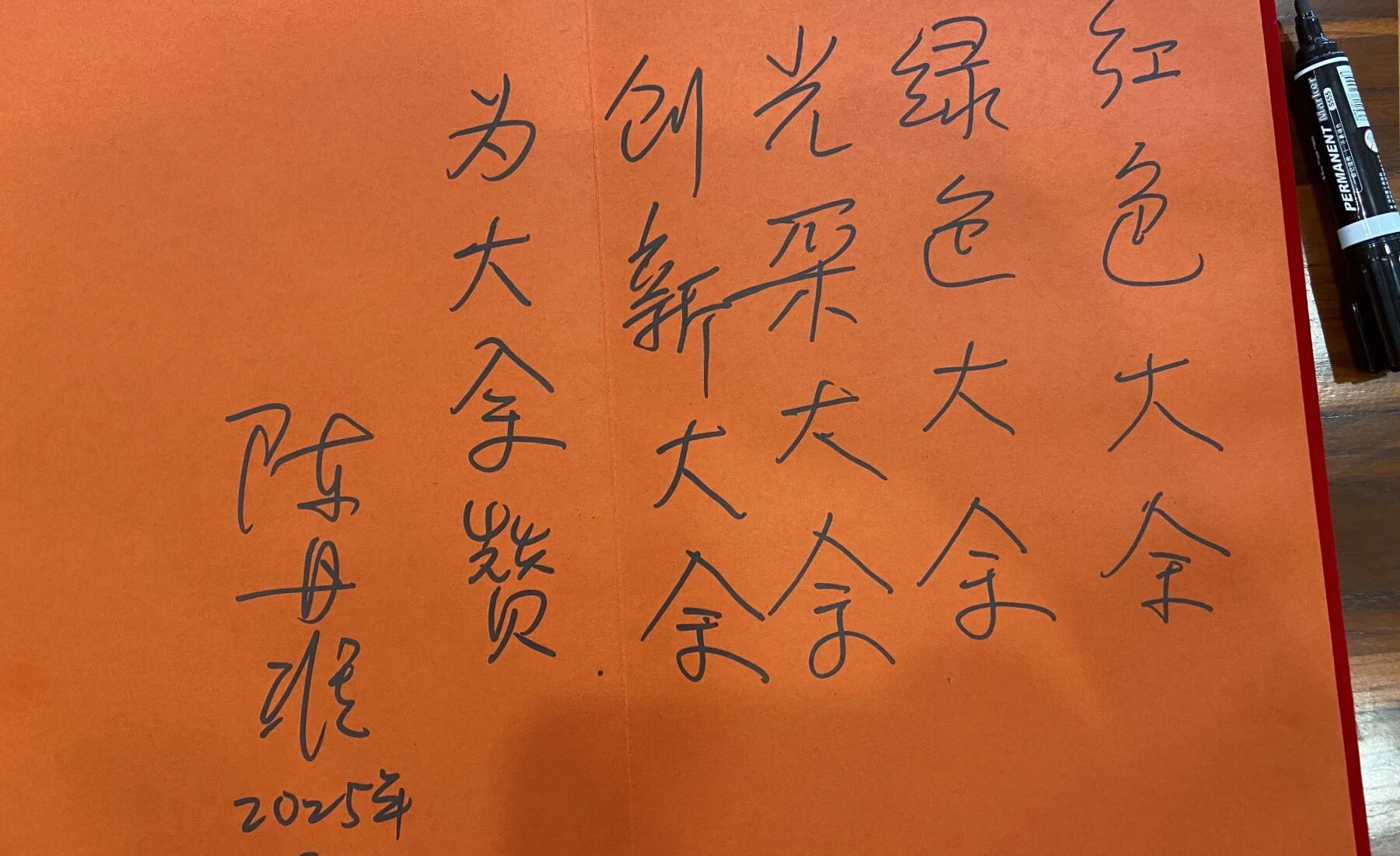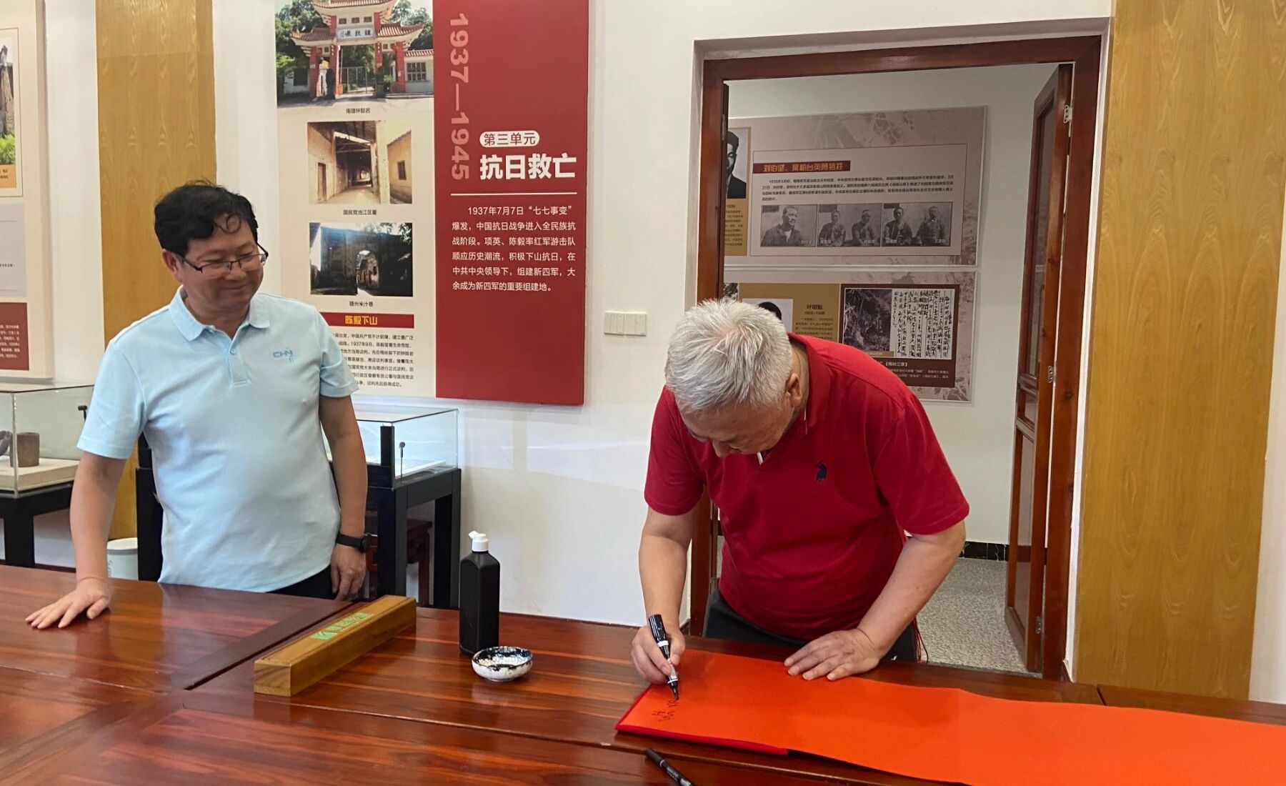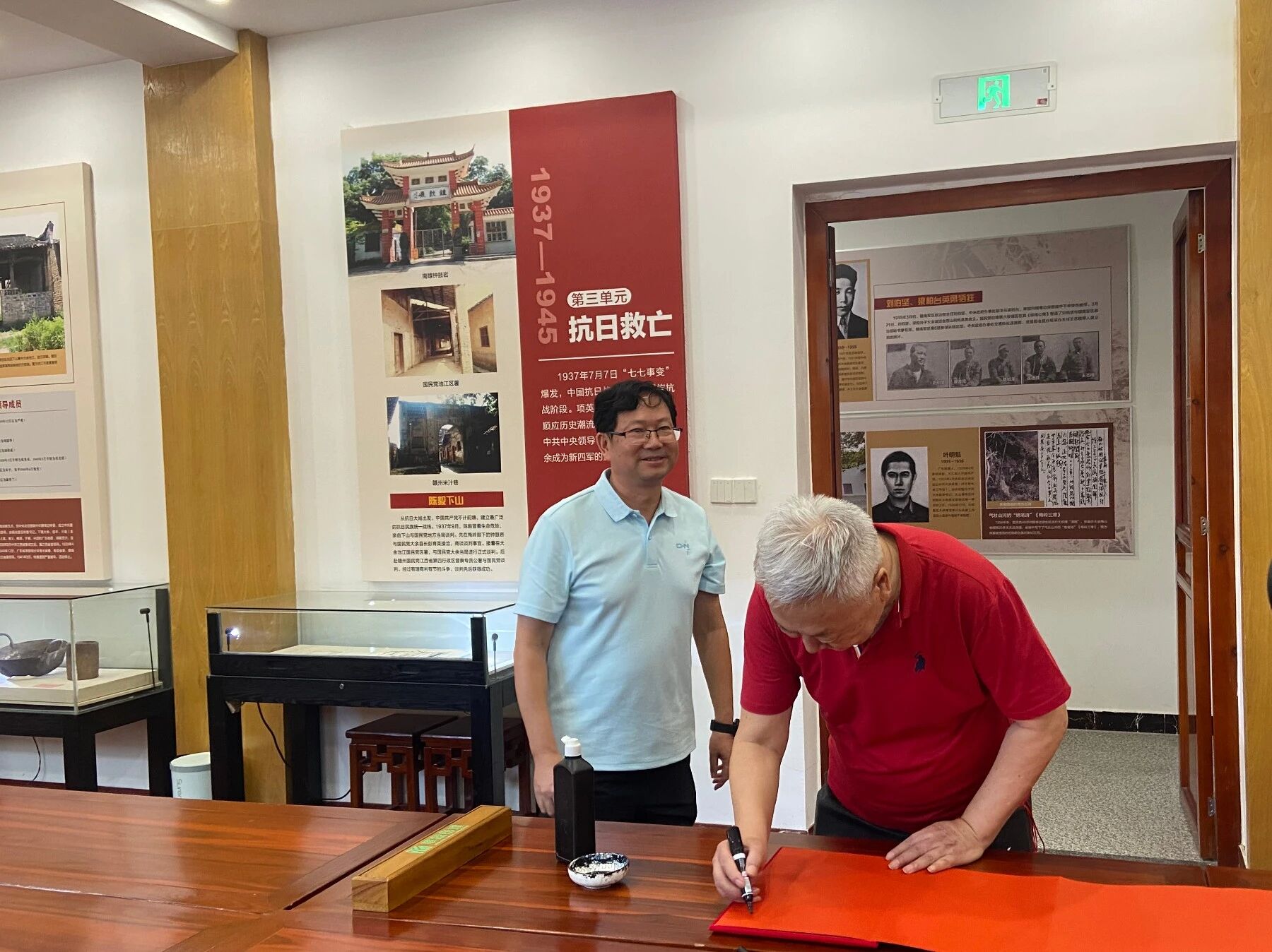 同時,陳丹淮將軍還現場揮毫,為大余縣博物館留下珍貴題字。筆鋒落紙間,蒼勁有力的字跡不僅飽含著將軍對大余縣厚重歷史文化的尊重與認可,更寄托著對博物館未來發展的殷切期望 —— 希望大余縣博物館能持續發揮文化陣地作用,讓更多人走進這里、了解大余,讓地方歷史文脈在新時代煥發更強生命力。