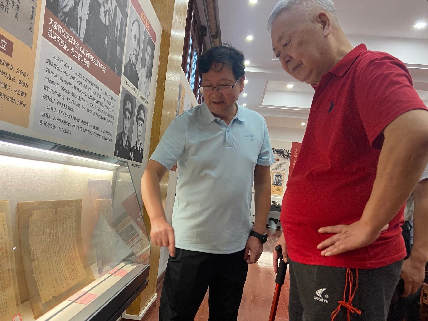 今天陳丹淮將軍走進大余縣博物館,先后駐足《絲路通衢卓越千秋—大庾嶺梅關古驛道歷史與文化展”》、《烽火歲月一大余縣革命簡史陳列展》和《庾嶺南來第一州—南安府歷史文化陳列展》,認真聽取了講解員介紹,將軍始終專注聆聽,不時結合講解內容回顧歷史細節。