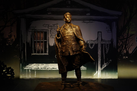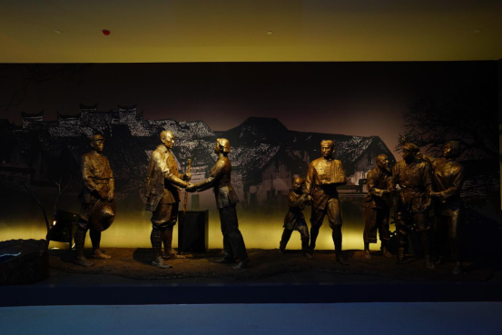 第六部分:“功勛卓著,精神永存”。由“堅定理想信念”等四個單元構(gòu)成,通過“大義凜然方志敏”“艱苦奮斗”“冒死認親養(yǎng)傷員”“劉伯堅等五人戴鐐長街行”共19尊人物雕塑構(gòu)成大型場景“精神演繹廳”,配以3個視頻滾動播放南方三年游擊戰(zhàn)爭英烈名單,對展覽進行升華,讓觀展情緒達到頂點。