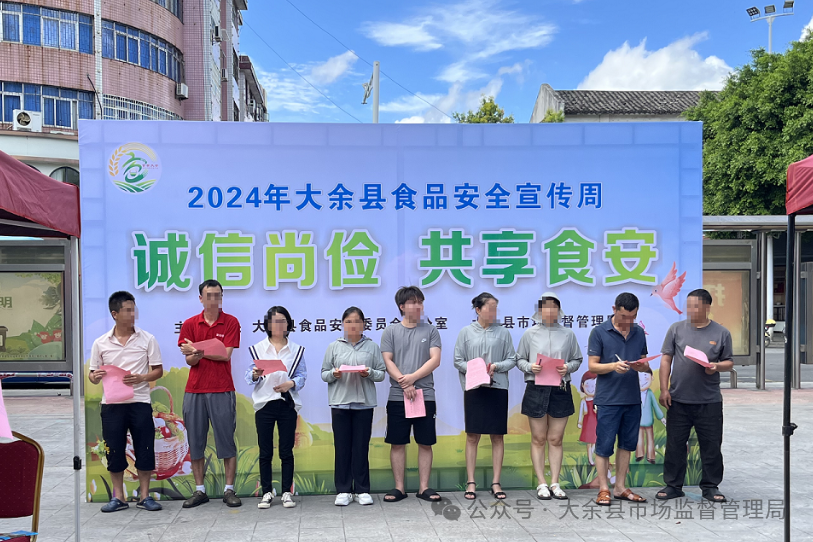7月16日,縣食安辦在大余縣街心花園開展了以“誠信尚儉 共享食安”為主題的2024年食品安全宣傳周主場活動。縣食安辦精心謀劃,組織縣農業農村局、縣衛健委、縣公安局、縣林業局、縣科工局、縣科協、縣商務局、縣城管局、縣融媒體中心、南安鎮、縣市場監管局參加了此次宣傳活動;各鄉鎮食安辦聯合同級有關部門和單位,結合本地實際和特色開展食品安全宣傳工作。