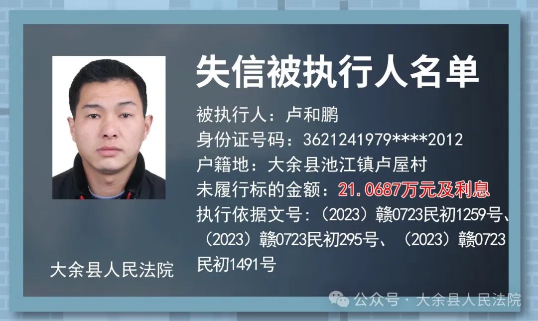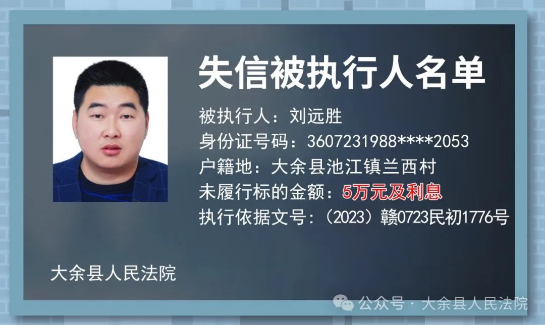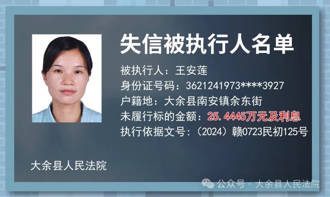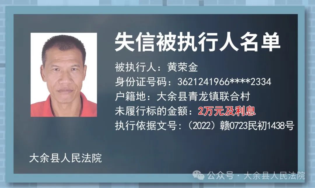 【失信曝光臺】大余法院公布失信被執行人名單(2024年第十三期)