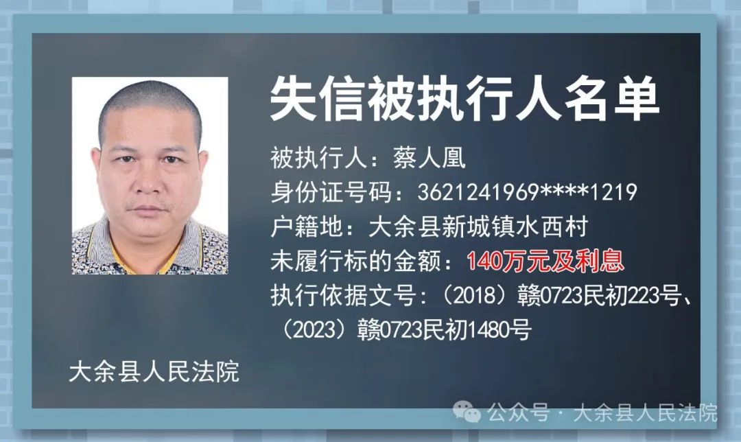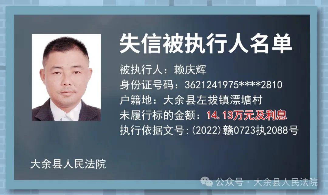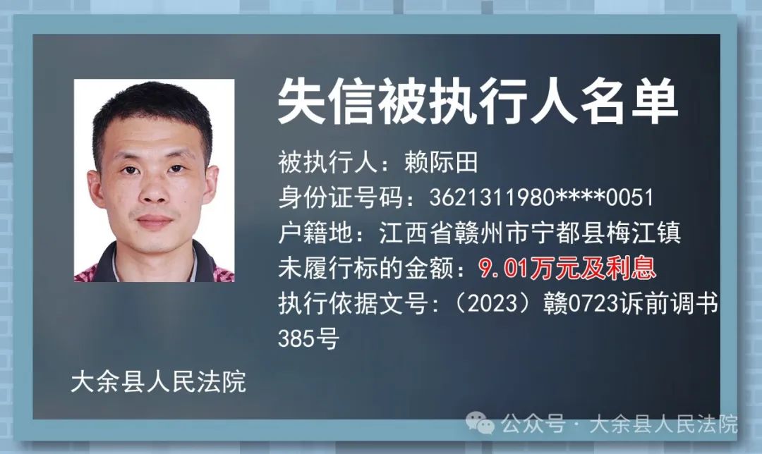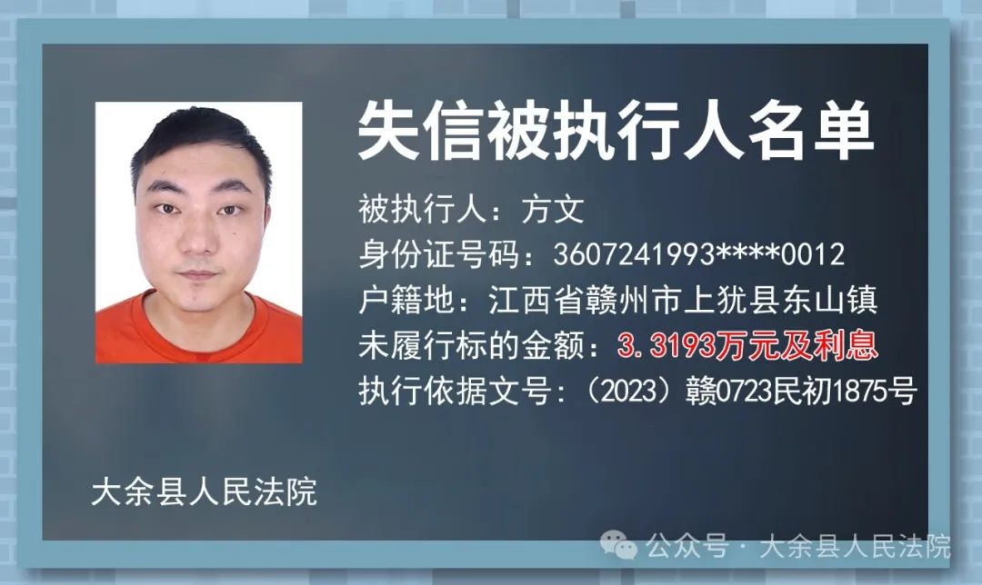 【失信曝光臺】大余法院公布失信被執行人名單(2024年第十二期)